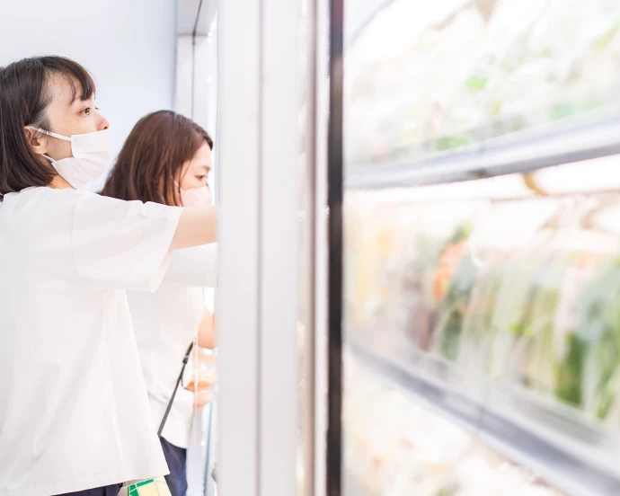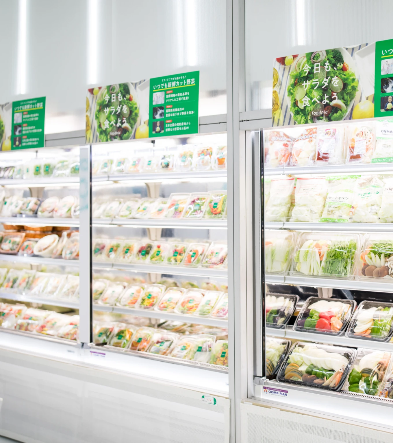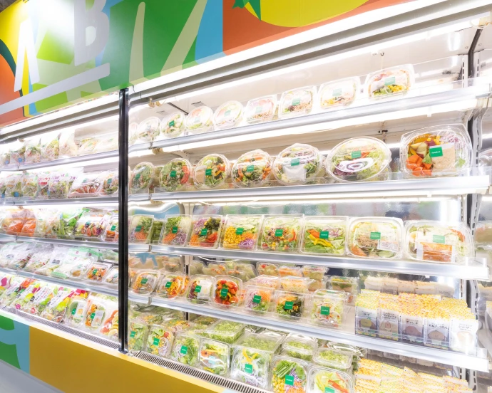 フードニア株式会社の商品開発は、市場や消費者ニーズをもとに新商品の企画・開発を行う仕事です。自社発信の企画提案と、バイヤーからの要望に応える提案の2軸で商品づくりを推進。ニーズが高まるサラダ分野では、アイデアを出し合い、ワクワクする見た目と価格のバランスを追及します。商談同行や市場調査で得たリアルな声を活かし、営業や自社工場と連携しながら、原料選定から試作・改良まで一貫して携わり、自分が開発した商品が実際に店頭の棚に並ぶ達成感を味わえます。